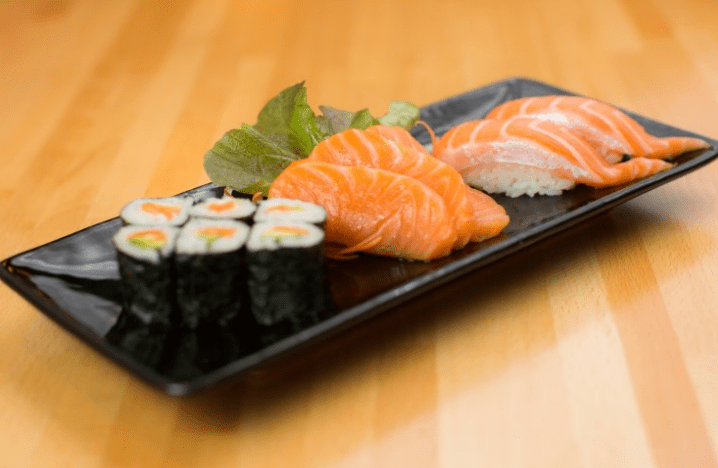 salmon sashimi (3 pcs), salmon nigiri (2 pcs), salmon maki roll (6 pcs)